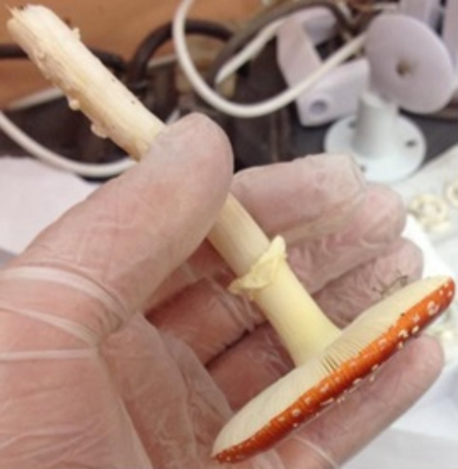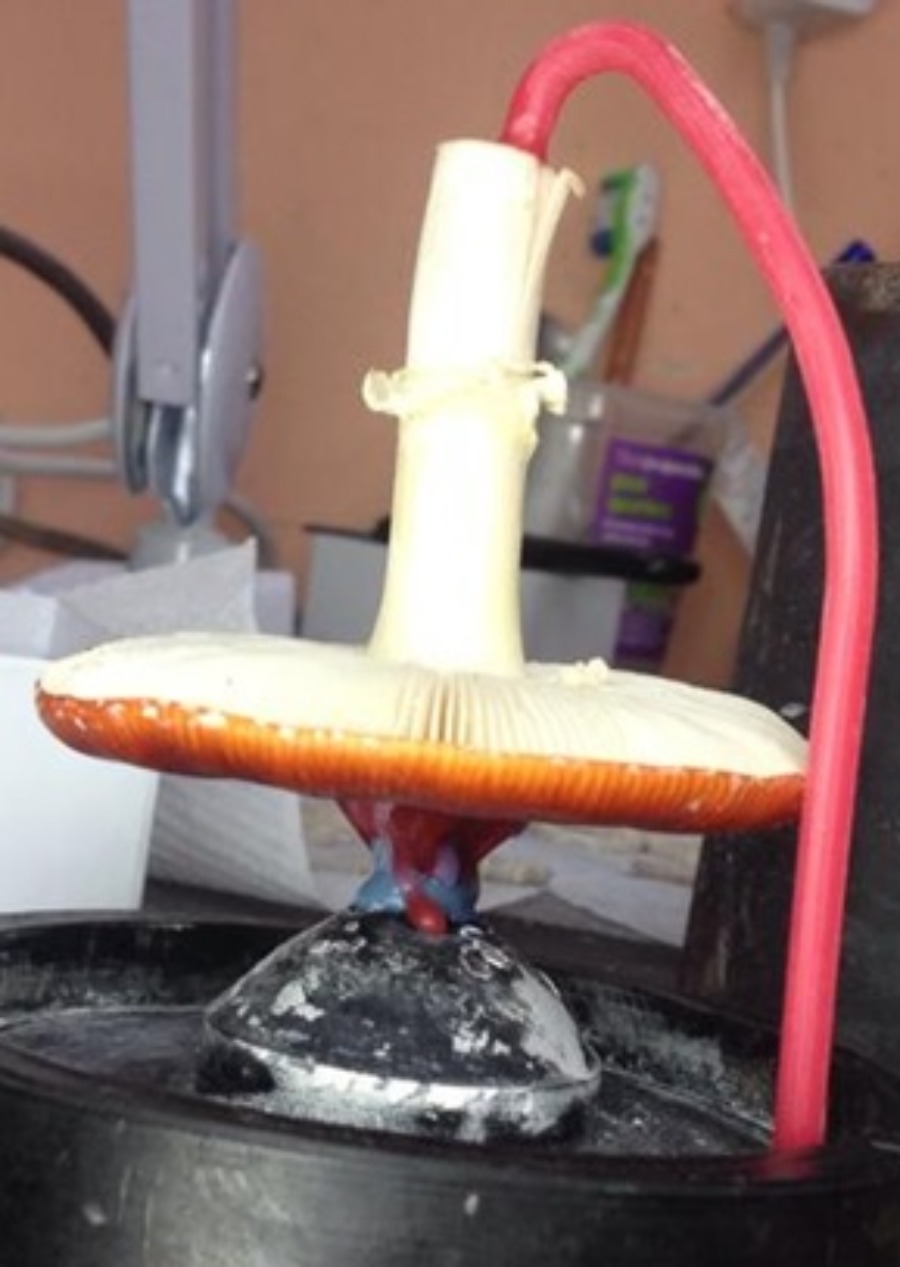 Found on a walk with my father, these mushrooms along with other plants have been used for experimental casting. Some coming out much better than others depending on how well the plant burns out in the oven and how well it deals with the hot plaster beforehand, we let the flask burn out for a lot longer but it is usually a guessing game. After trying around a dozen times, still not perfect this was our best outcome of this size.
